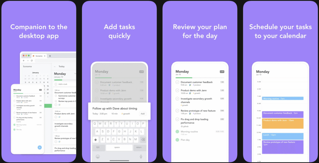 SunsamaDaily planningCombines tasks with calendar planningBetter for work than casual use
