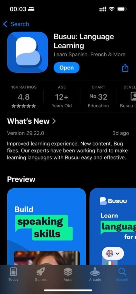 Busuu is ideal for learners who want structured lessons, grammar guidance, and speaking practice. It is a strong choice for beginners to intermediate learners who want steady progress and real-world communication skills—not just vocabulary.