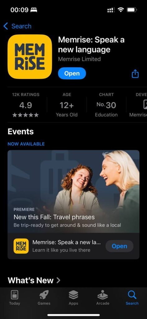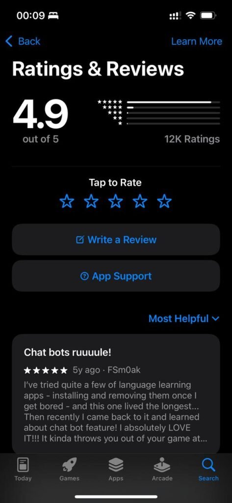 Memrise likewise is very popular: on Google Play it has over 10 million+ downloads and about 1.56 million reviews, with a 4.5-star rating. On the App Store it’s reported at about 4.8 stars with over 146 k ratings. While many users appreciate its fun and effective vocabulary-building tools, some complain about changes in community course access and limited depth for advanced learning.