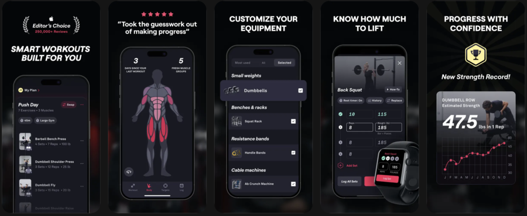 This is where Fitbod stands out most clearly. Its AI-driven approach is the defining feature of the app. It tries to make smart decisions based on your previous workouts and recovery signals.