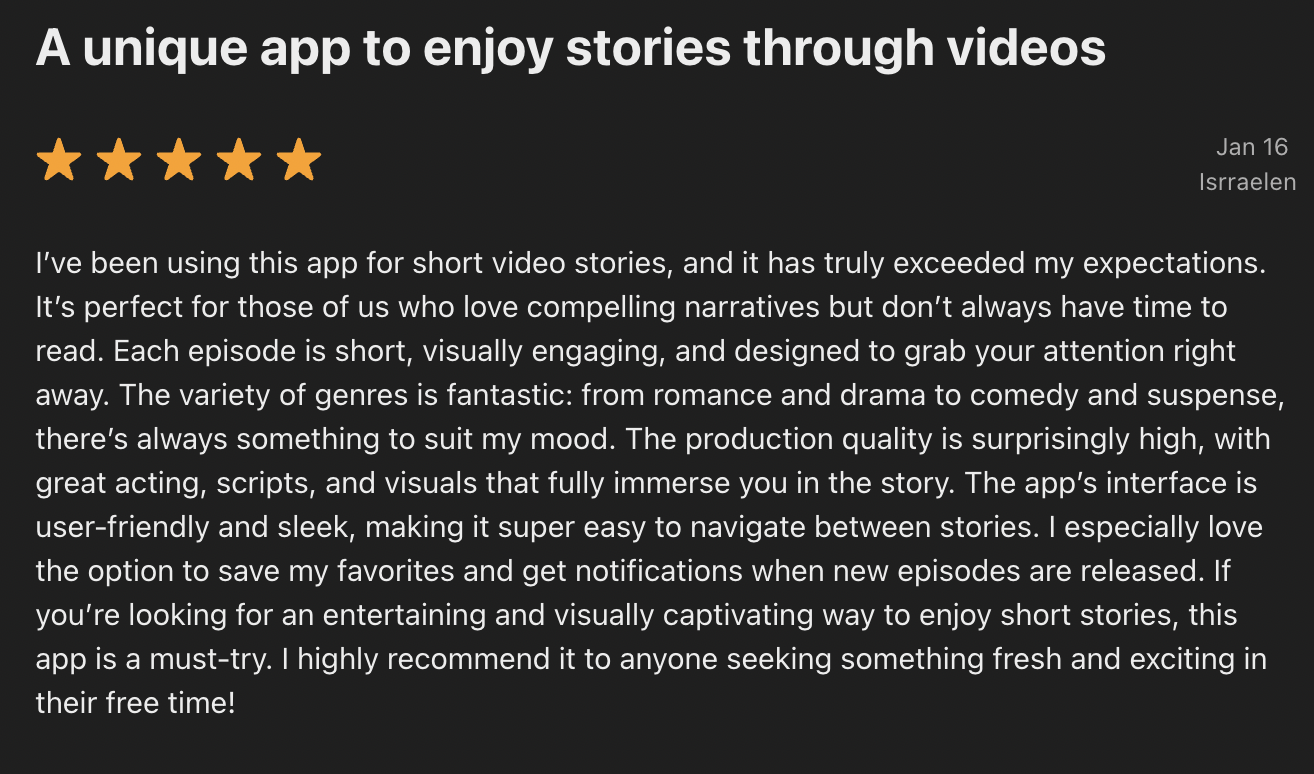- Another user mentioned they “can’t stop watching those short films”, illustrating how the format keeps viewers engaged. App Store