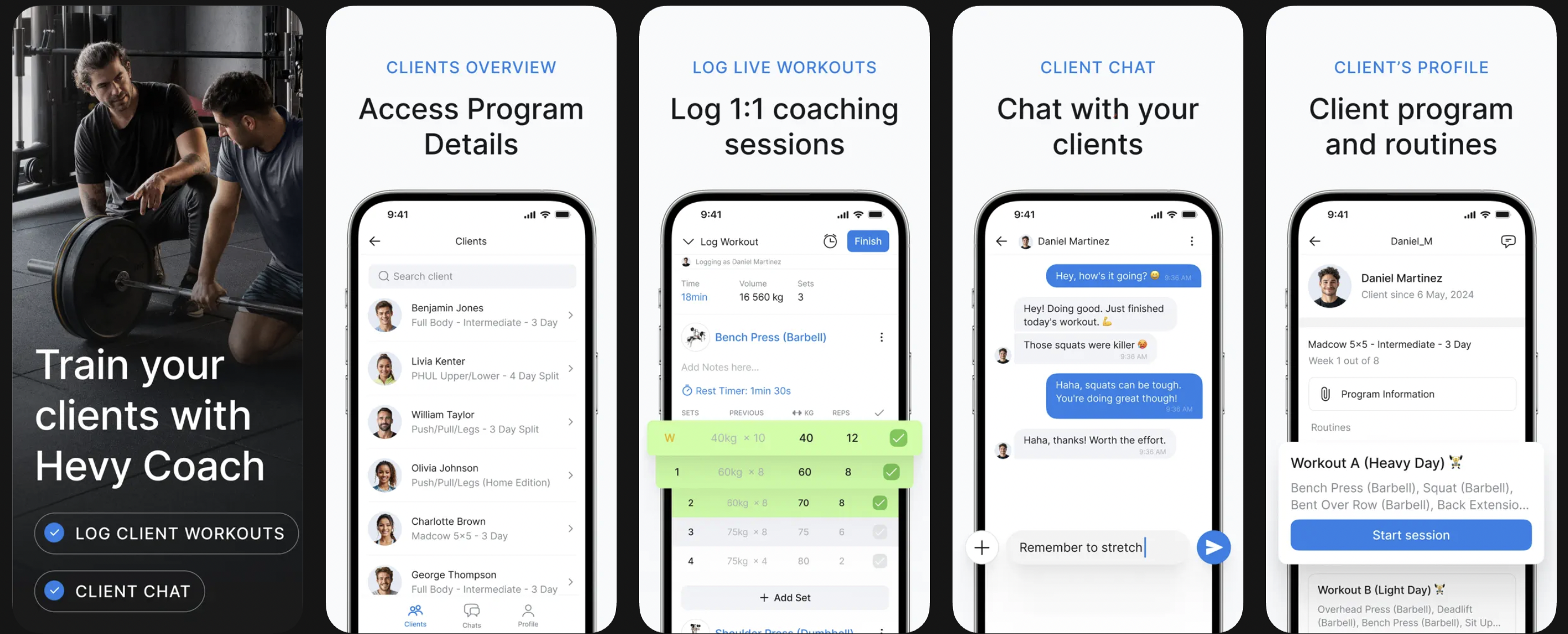 - Progress charts and workout statistics, which help users see long-term trends and monitor improvement over time.