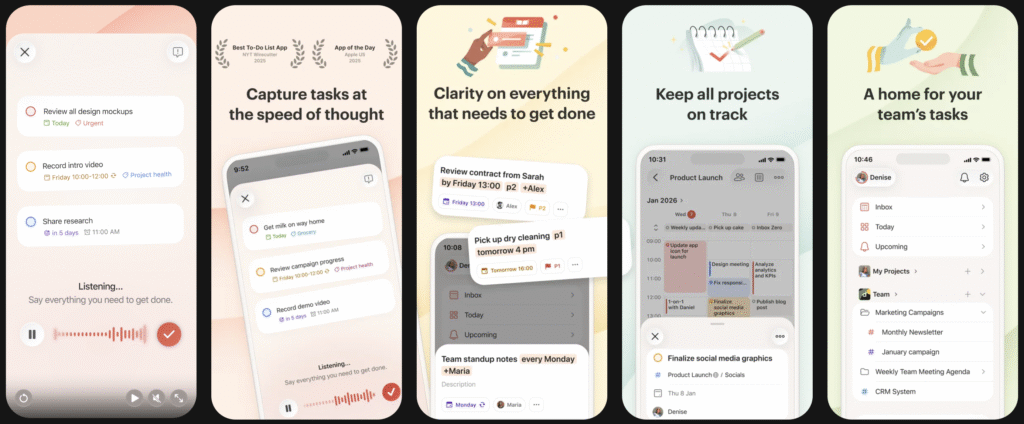 Todoist is built around simplicity and structure. Its clean, minimalist interface keeps the focus on tasks, projects, and priorities without extra distractions. It excels at quick task capture thanks to its excellent natural-language input, making it easy to add tasks on the fly. Todoist also stands out for advanced organization: labels, filters, priority levels, and recurring tasks make it especially strong for managing complex workflows or work-related projects. With powerful integrations for calendars, email, and team tools, Todoist feels very professional and scalable, particularly for people who collaborate with others or rely on a broader productivity ecosystem.