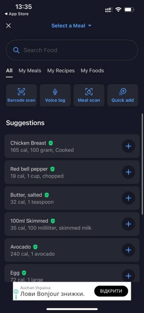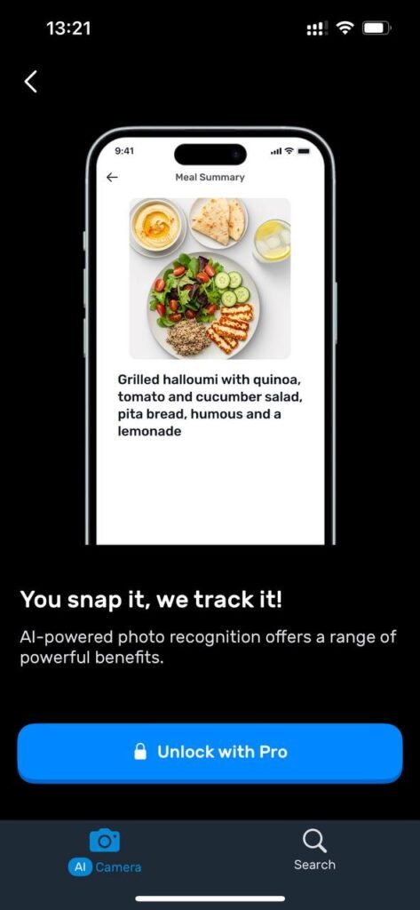 MyFitnessPal takes a more technical approach. Its AI “Meal Scan” feature (available only for Premium users) also lets you scan your food with your camera to log meals instantly. It recognizes foods, suggests servings, and allows you to confirm or edit before saving — which makes it a bit more reliable in practice. MyFitnessPal is also working on expanding its AI through personalized meal planning and smart recommendations, thanks to a recent acquisition of a company called Intent, which specializes in AI-based nutrition planning.