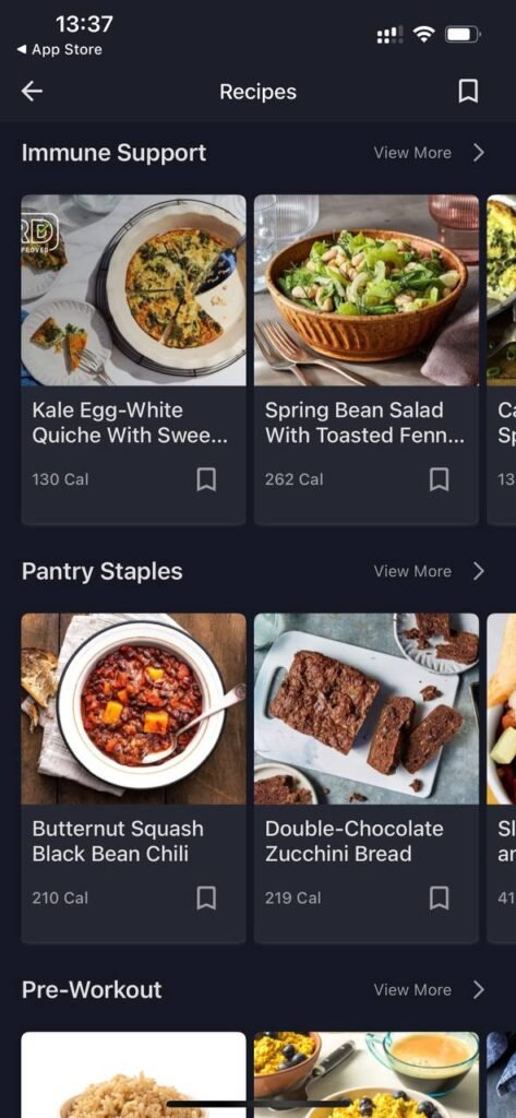 - Recipes & Meal Plans – offers a huge collection of healthy recipes and ready-made meal plans filtered by goals like weight loss, high protein, or vegan diets.